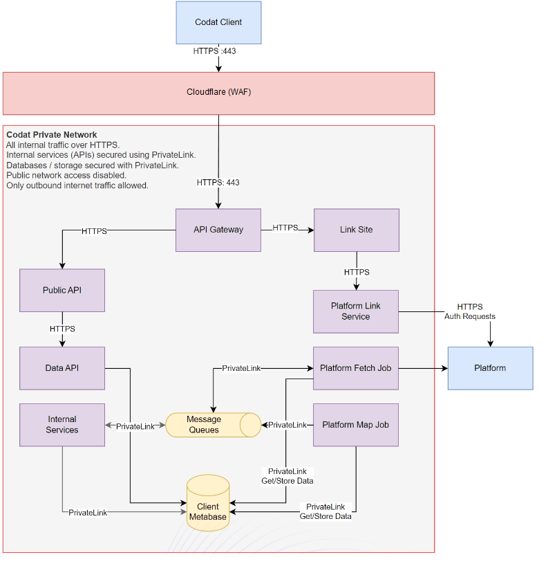 Codat has a microservice architecture. This modular structure parallelizes software development and enables a scalable and robust system to be created.
